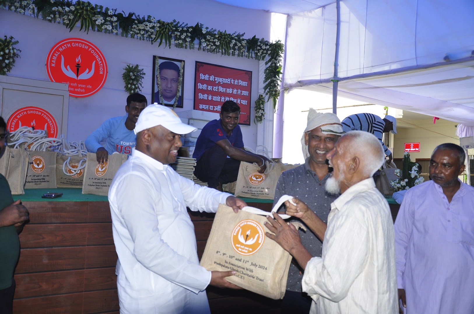 प्रथम पुण्यतिथि पर कमल नाथ घोष फाउंडेशन द्वारा पूरे पंचायत में (धोती + साड़ी + गमछा) आदि का वितरण किया गया।