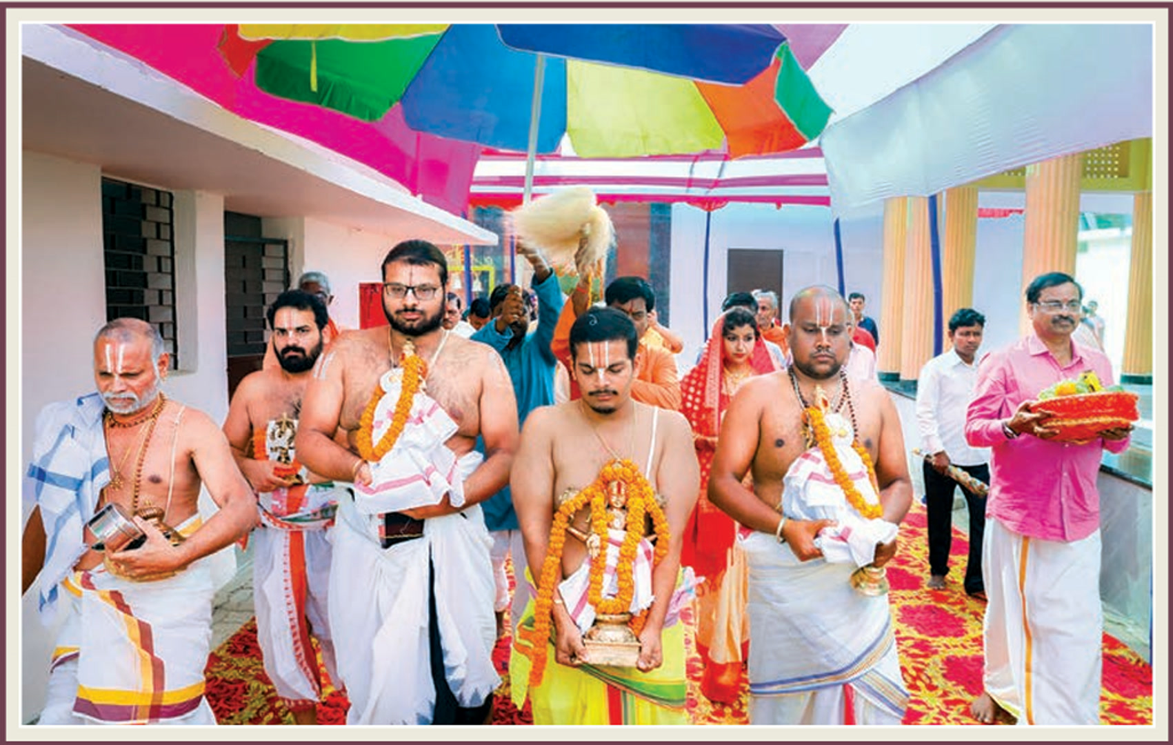 वेंकटेश्वर बालाजी मंदिर छत्र पूजा में पुरोहित गण।