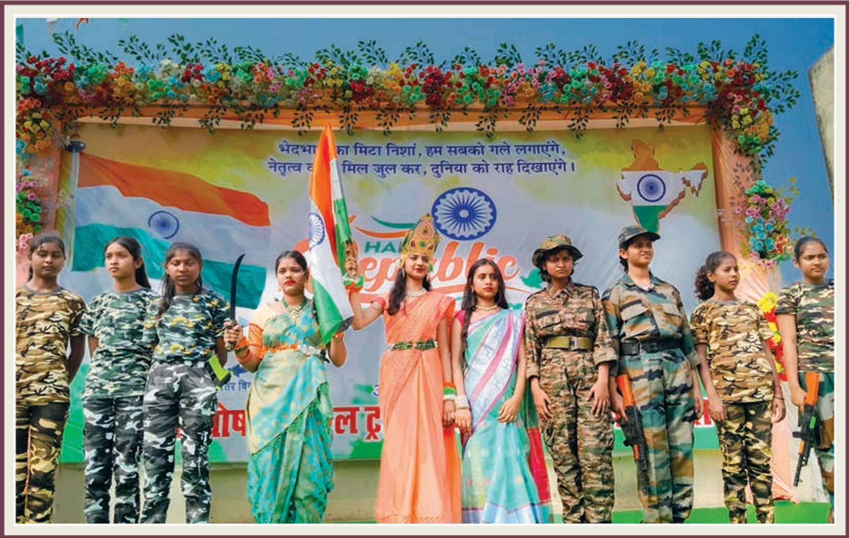 26 जनवरी 2026, गणतंत्र दिवस के शुभअवसर पर छात्राओं के द्वारा देशभक्ति झांकी की प्रस्तुति का दृश्य।