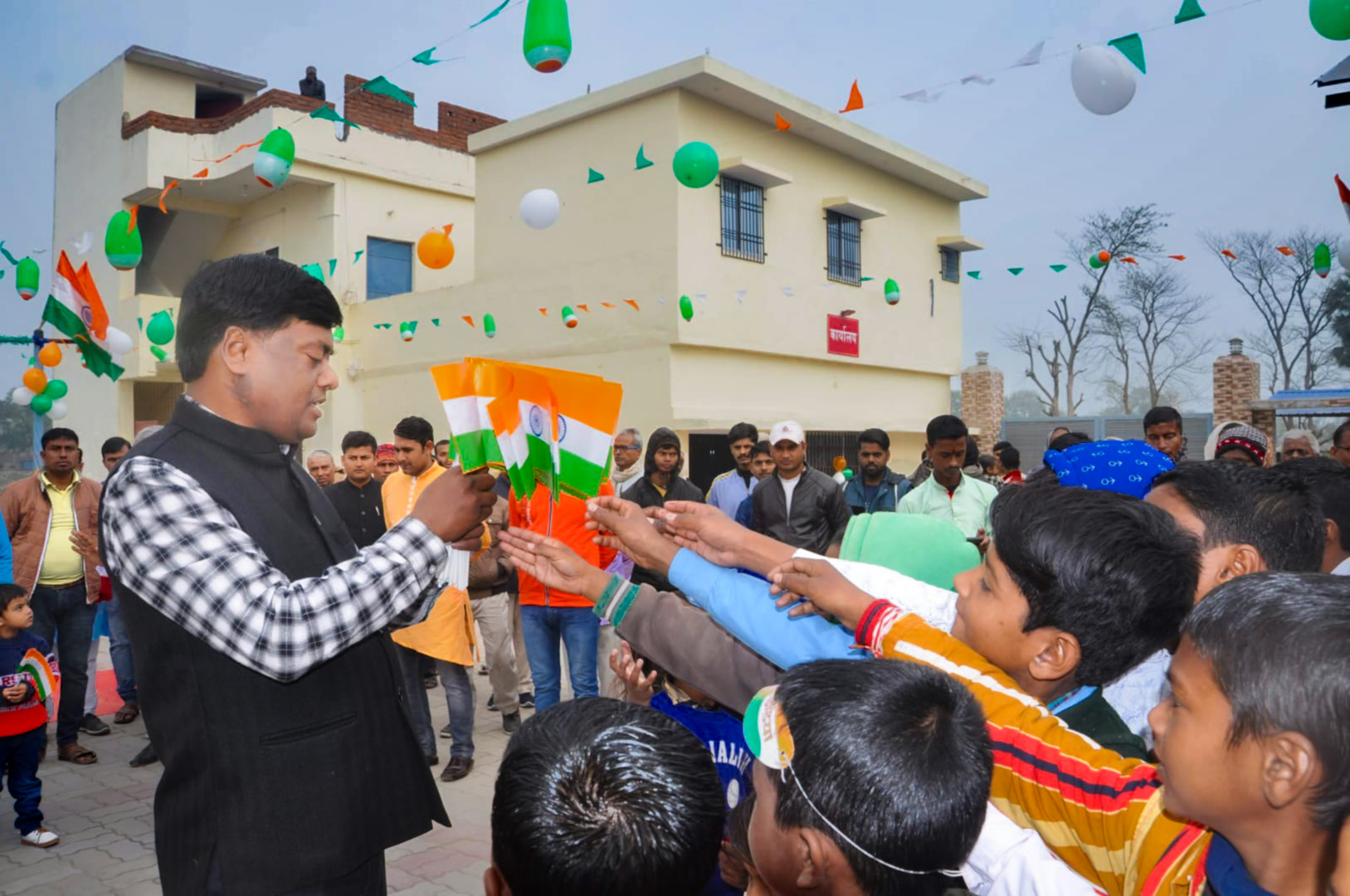 26 जनवरी के शुभअवसर पर देशप्रेम एवं राष्ट्रभावना के उत्साह में तिरंगा पा कर खिल उठे बच्चे।
